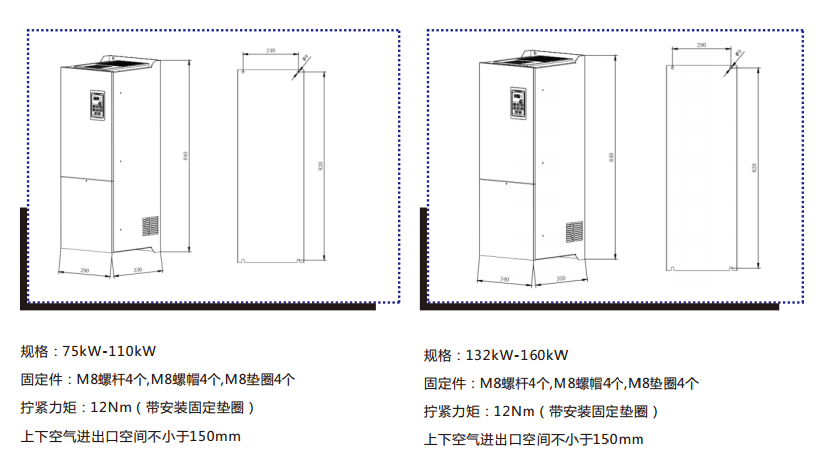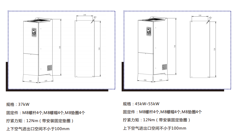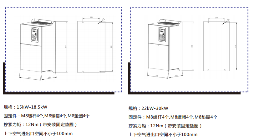 7、獨特雙風道設(shè)計,功率模塊和控制單元彼此獨立散熱,提升了產(chǎn)品的可靠性,且支持并排安裝。